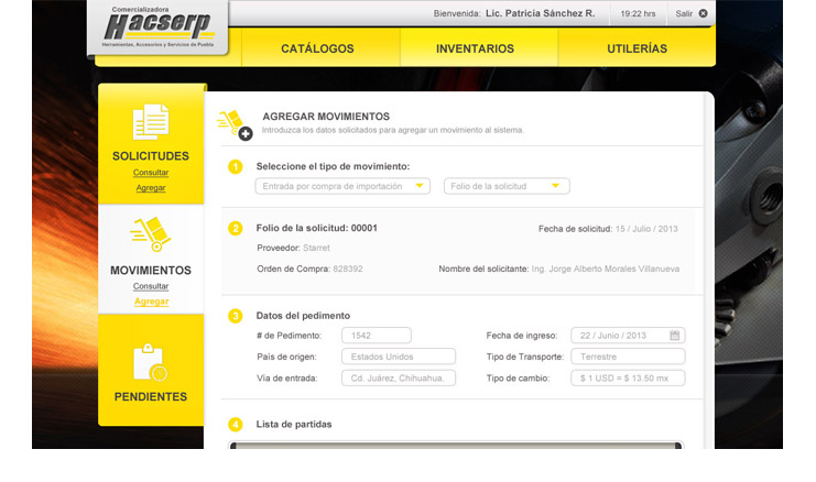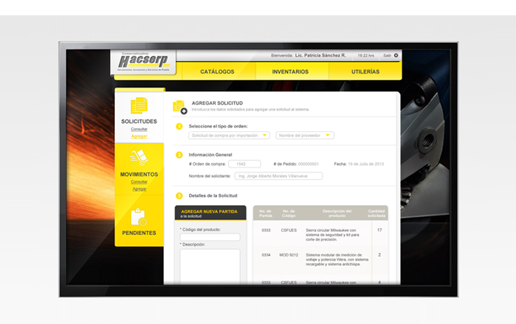 Sistema creado como herramienta para mantener un manejo eficiento de ingresos y egresos de herramientas en el inventario. Así como un registro de pedidos y las diferentes etapas en las que estos pueden encontrarse.